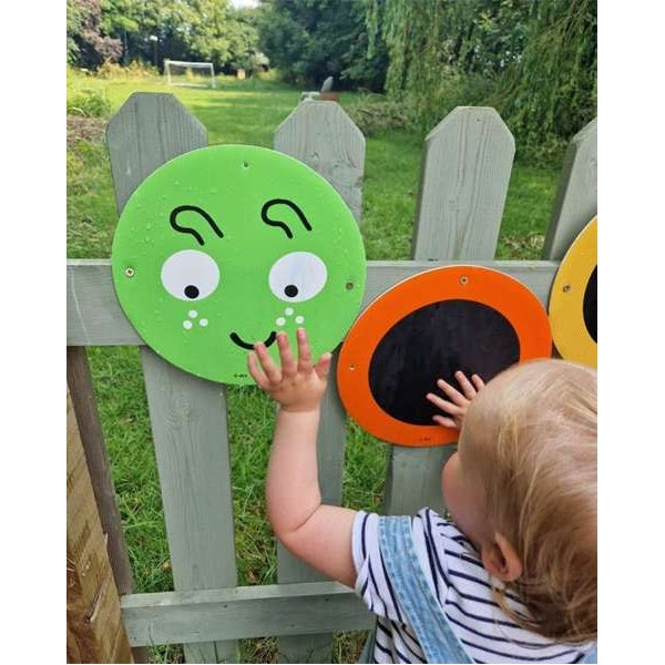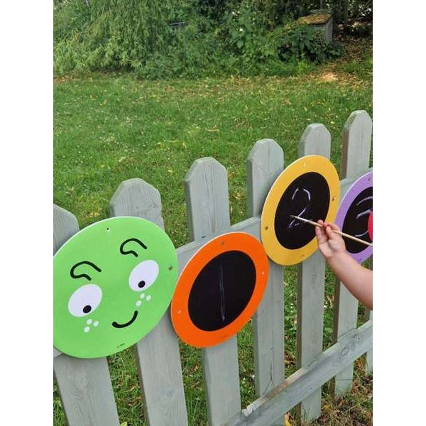 This fun set comprises 5 chalkboard circles with a charming caterpillar face to create a playful area to explore mark making, number and letter formation and all the imaginative possibilities that come with a simple piece of chalk. Set of 6. Fully weatherproof and durable so is perfect for brightening up your outdoor space, giving opportunity to practice skills in a different environment and scale. Use as a phoneme frame, five frame, number line, for story sequencing, sentence ordering, mark making and number sentences. Supplied with connectors and pre-punched holes. Suitable for outdoor use.