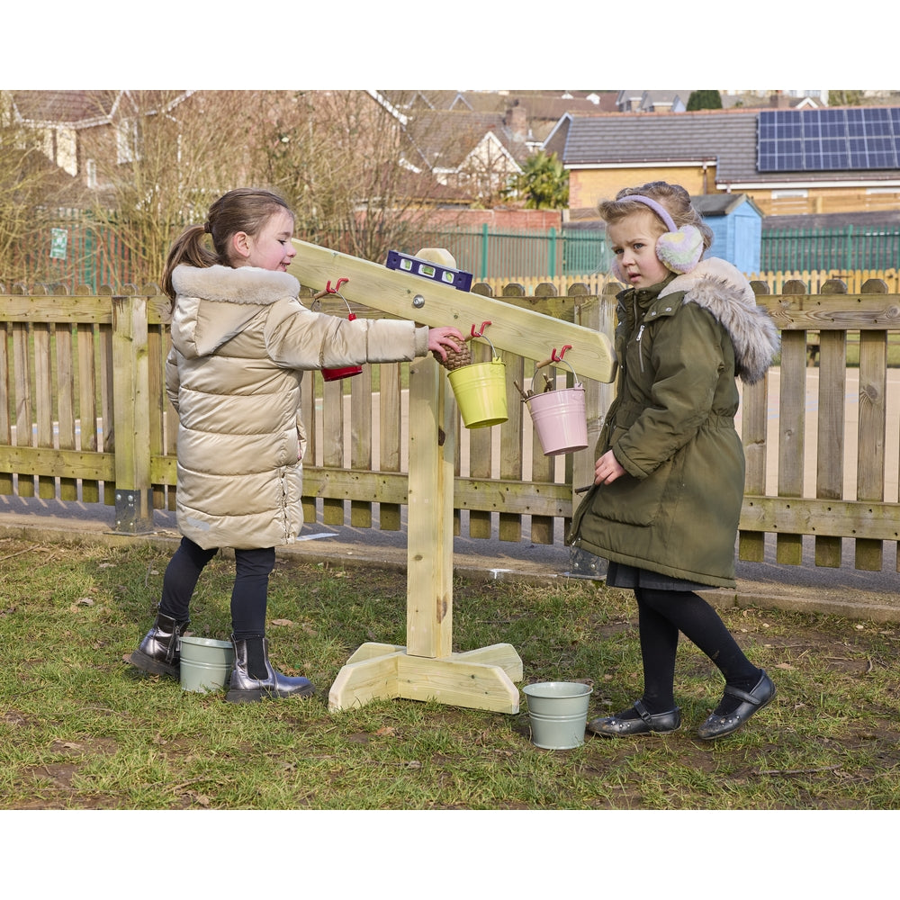 These Large Balance Scales with buckets and a built-in level are designed to ignite curiosity and learning through hands-on exploration. This engaging educational tool allows children to discover the fundamentals of measurement and balance in a fun and interactive way. With its durable construction and intuitive design, the balance scales promote cognitive development and STEM learning, making it an essential addition to any classroom or play environment. L1000 x D450 x H1000mm.