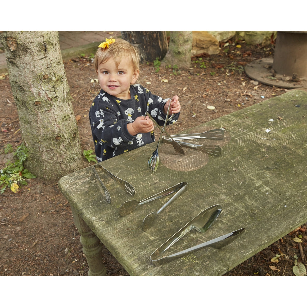 A pack of five metal tongs featuring different shaped ends and levels of resistance to give appropriate challenge to muscles and hand-eye coordination. These tongs are perfect for developing hand strength and dexterity, preparing their little hands for writing. These tongs are wonderfully versatile and will make a great addition to your loose parts play, mud kitchen or messy play areas to name just a few.