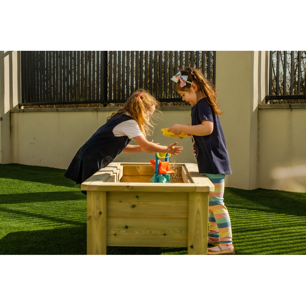 The raised design of the sandpit offers ergonomic and accessible play, allowing children to engage comfortably and minimising bending and stooping. The innovative chalkboard lid adds a multifunctional element, providing a space for creative expression and cognitive development through drawing and writing activities. This interactive sandpit fosters imaginative play, fine motor skill development, and open-ended exploration, offering children a stimulating and inviting environment to learn and play, whether indoors or in outdoor play areas. L1200 x D600 x H600mm.